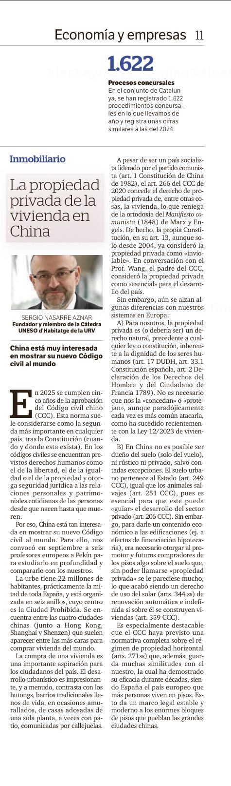 Conferencias Comparative law comments to arts. 251-296 of the Chinese civil code 2020, Pekín, septiembre 2025. 13 de octubre de 2025 Sergio Nasarre Aznar Deja un comentario English Commentary of the Chinese Civil Code, Remnin University, Pekín (China) Aquí les dejo una breve reseña de lo trabajado (Diari de Tarragona, Economía, 12-10-2025). Enlace a la noticia aquí.