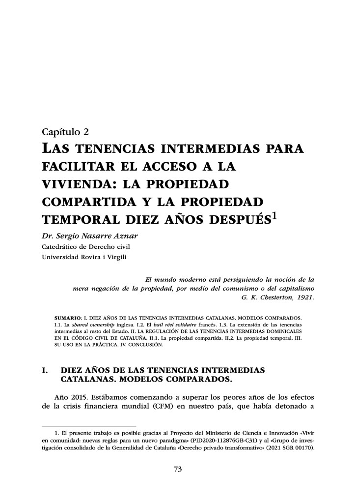 Publicaciones académicas Las tenencias intermedias para facilitar el acceso a la vivienda: la propiedad compartida y la propiedad temporal diez años después 6 de noviembre de 2025 Sergio Nasarre Aznar Deja un comentario En el libro colectivo «Vivienda y Derecho civil», Atelier, 2025. Descarga del capítulo a texto completo aquí. El libro completo puede hallarse aquí.
