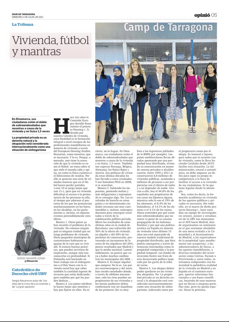 Opinión Vivienda, fútbol y mantras 12 de julio de 2023 Sergio Nasarre Aznar Deja un comentario Diari de Tarragona, 5-7-2023. Puede leerse aquí.