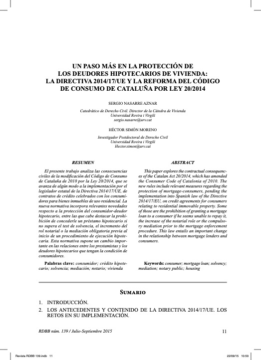 S. Nasarre Aznar, “Parte III. Operaciones pasivas. La refinanciación de créditos y préstamos hipotecarios”, en NASARRE AZNAR, MUÑIZ ESPADA y SÁNCHEZ JORDÁN (coords.), La reforma del mercado hipotecario y otras medidas financieras en el contexto de crisis económica, Madrid, 2009, EDISOFER, pp. 399 a 552.