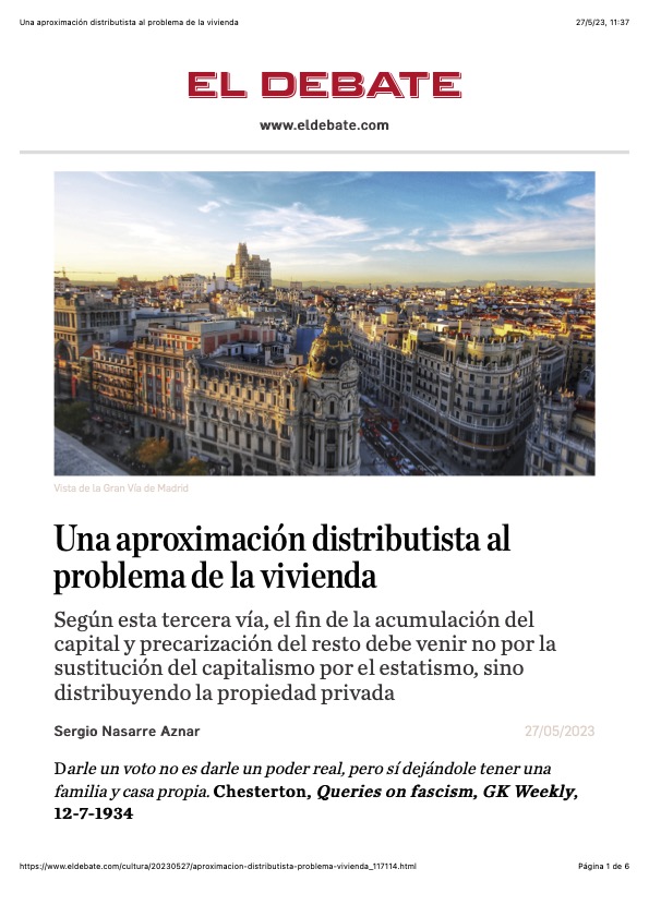 OPINIÓN. Una aproximación distributista al problema de la vivienda.